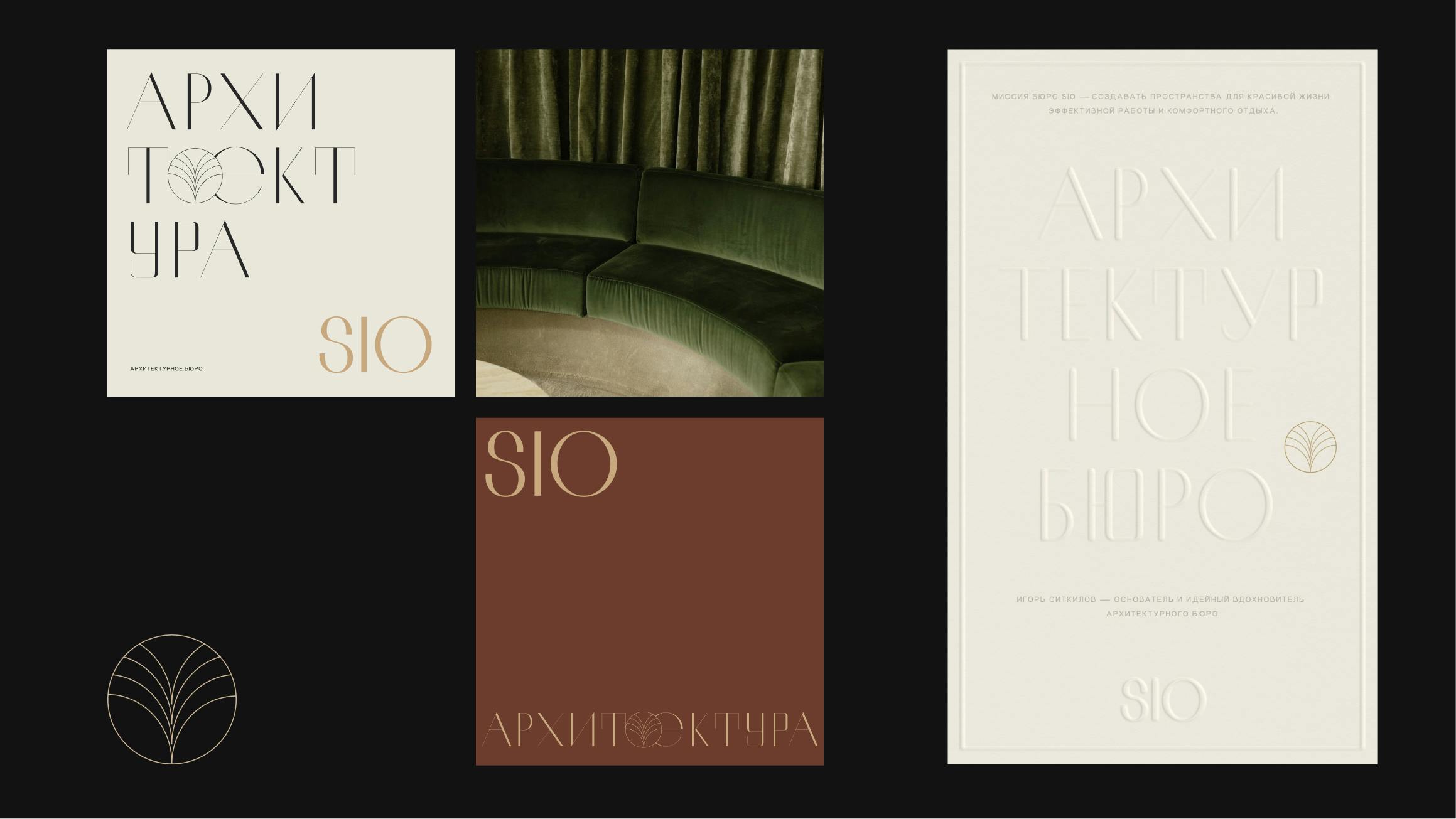 We developed a brand identity for SIO, an architectural bureau working in the Art Deco style with elements of contemporary classicism.