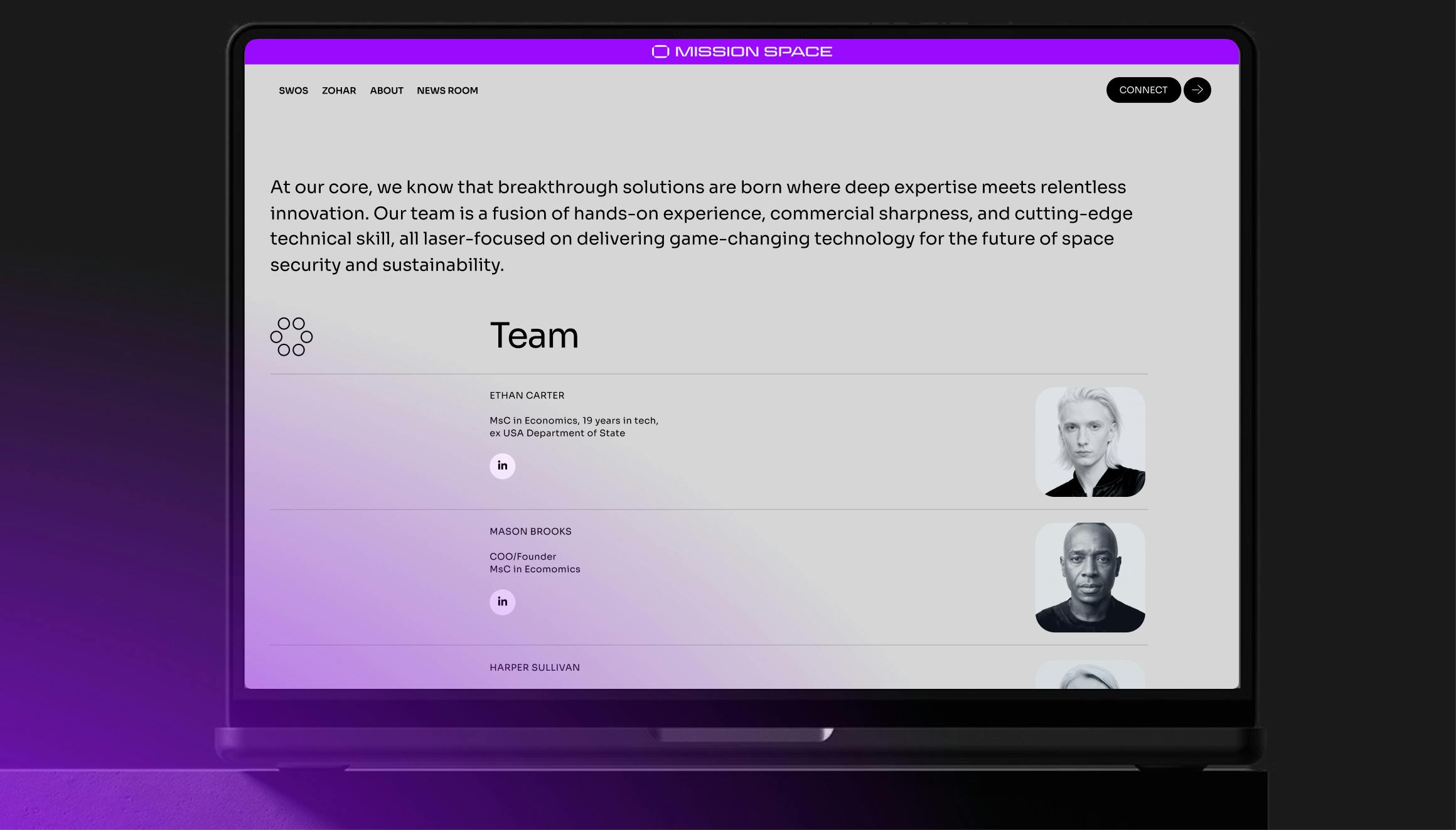 We developed a contemporary visual identity for Mission Space that stands out against the traditionally conservative aesthetics of the space industry.