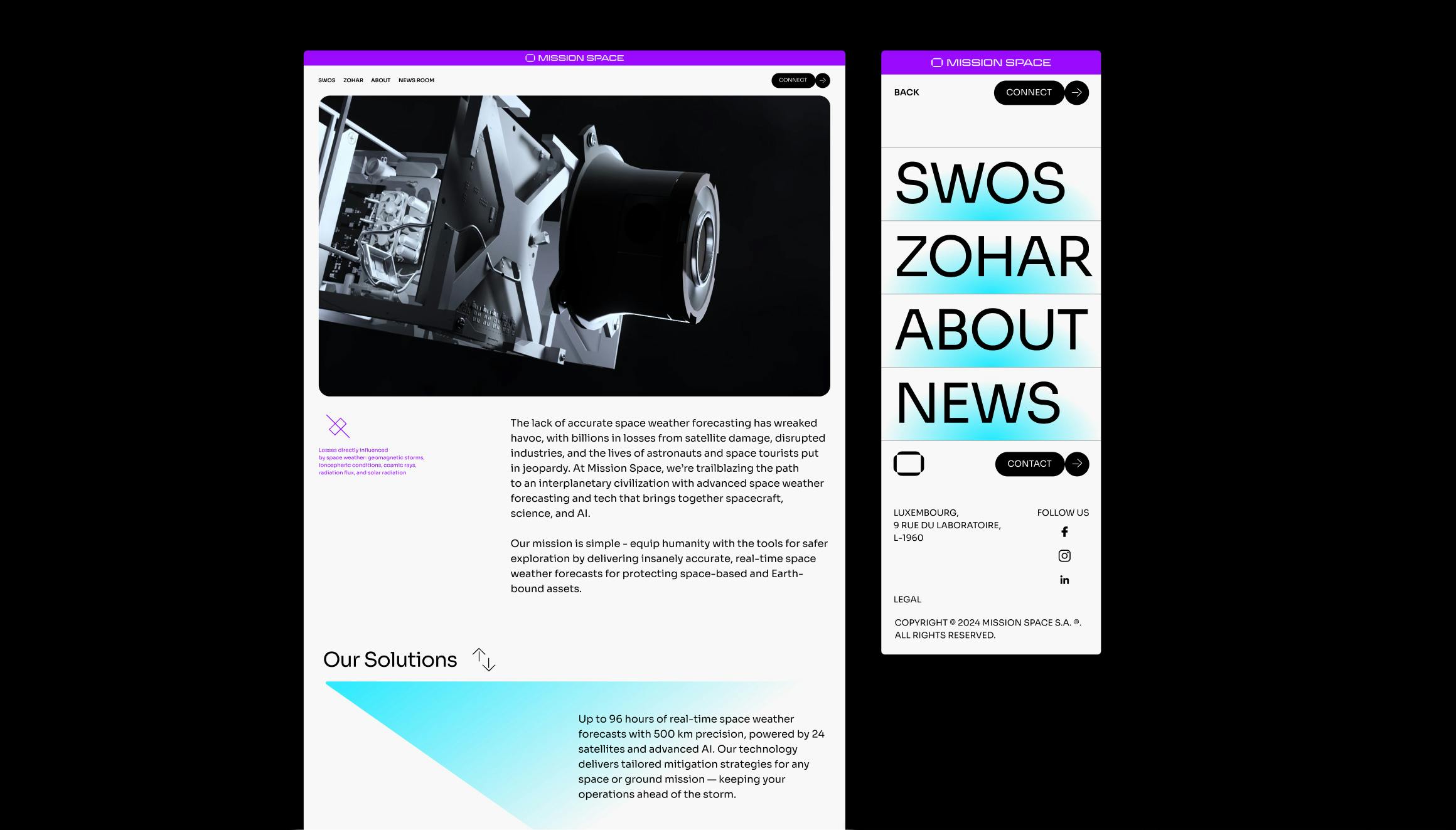 Mission Space is a high-tech company specializing in space weather monitoring and forecasting its impact on both ground and orbital infrastructure. Their solutions help minimize risks for satellites, aviation, energy, and telecommunications.