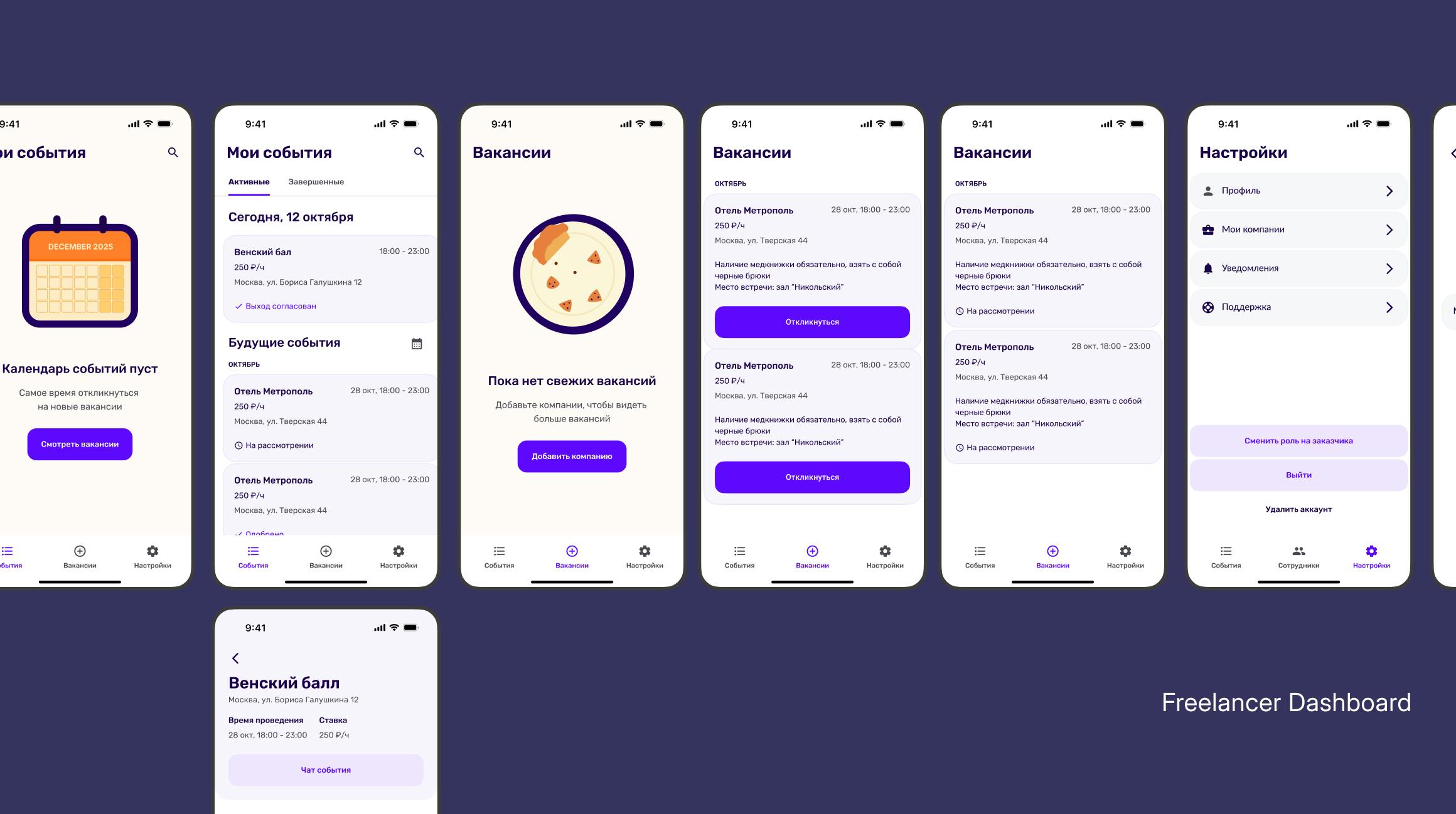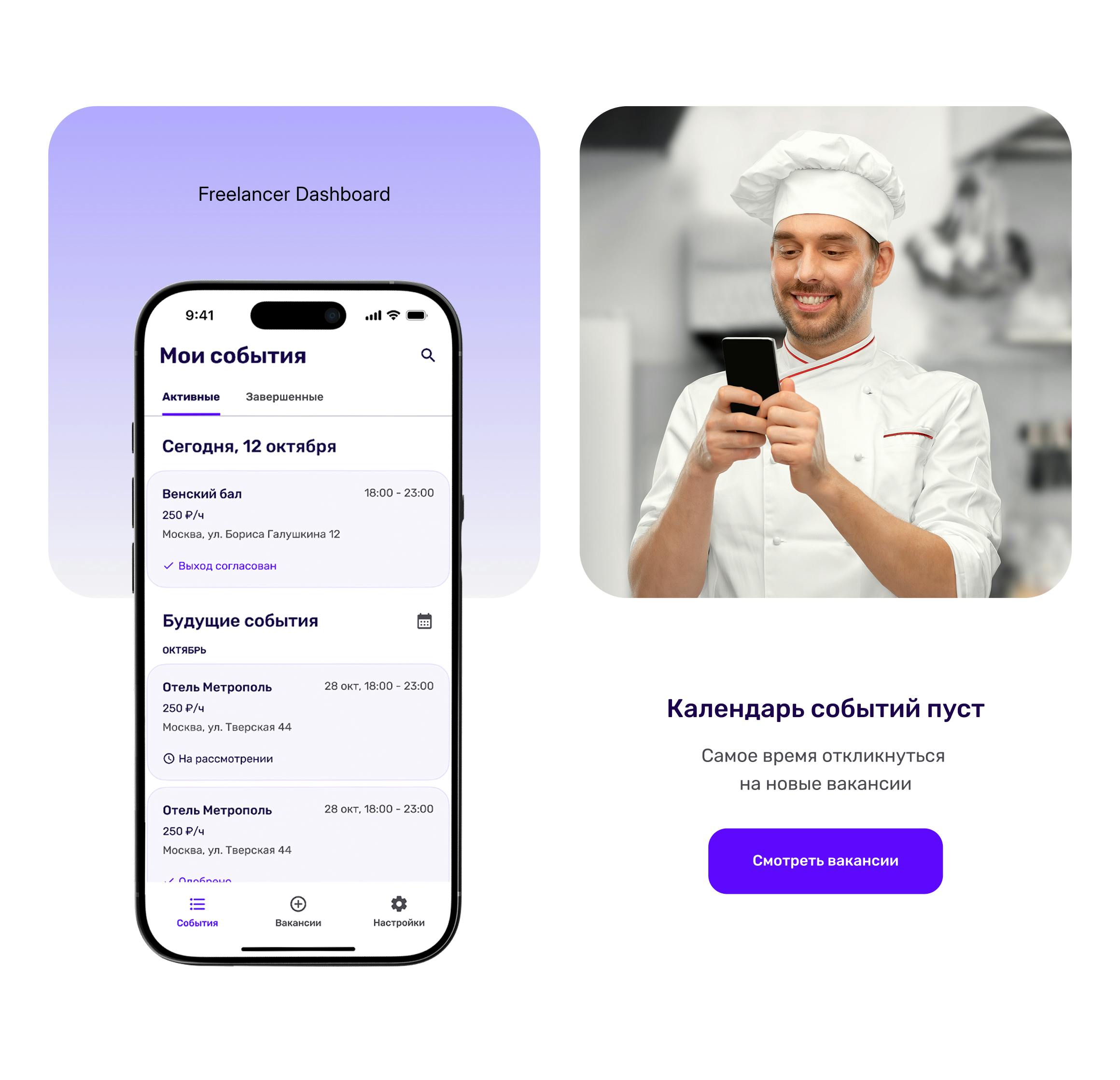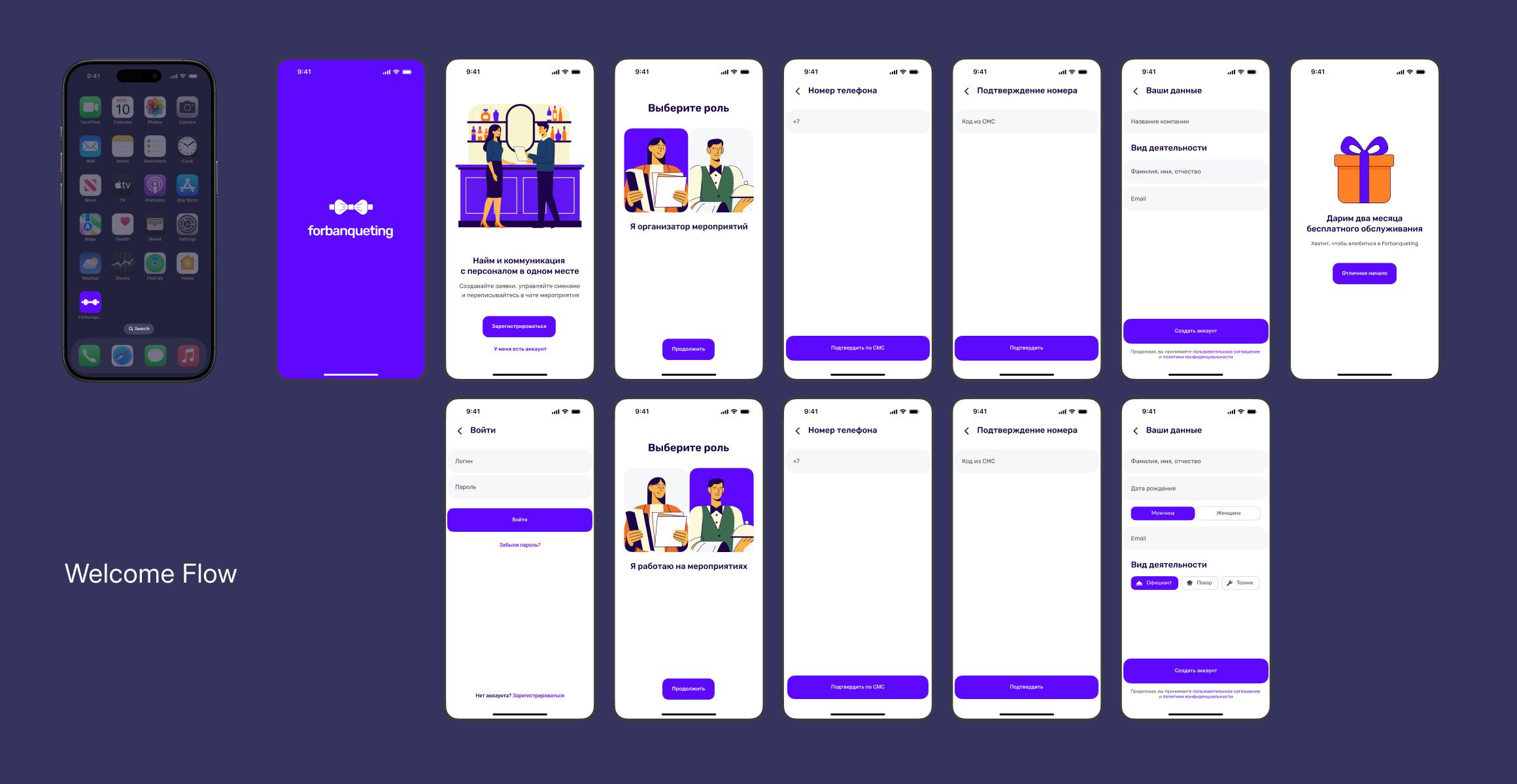 Our studio developed the user flows and UX/UI for the Forbanqueting app, a platform connecting freelance professionals with businesses in the catering and hospitality industry.